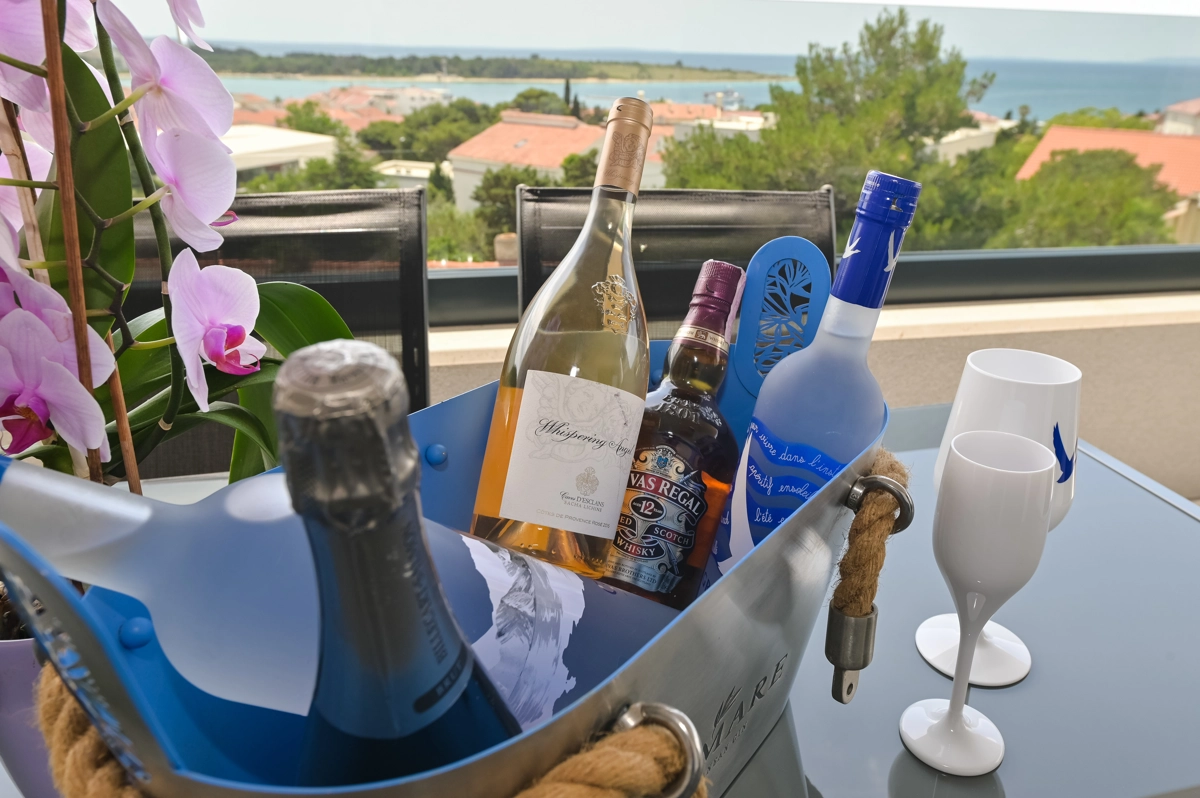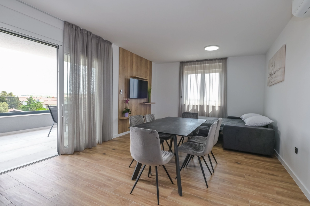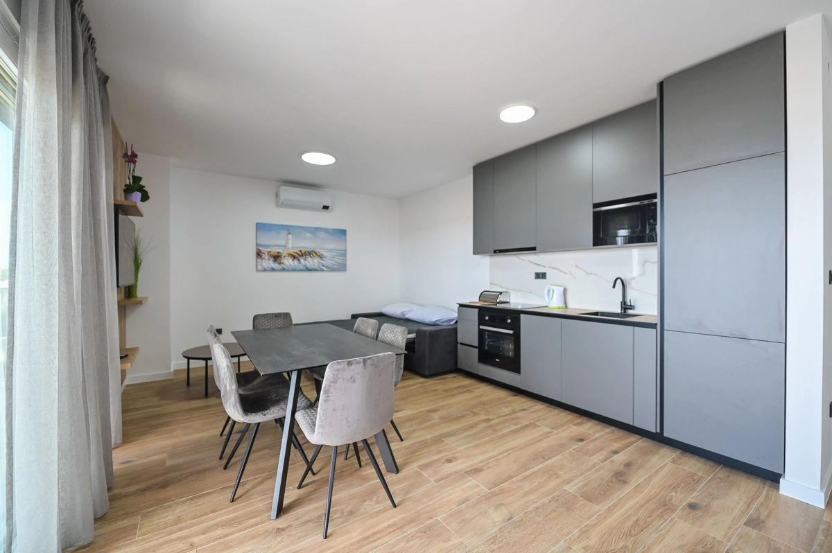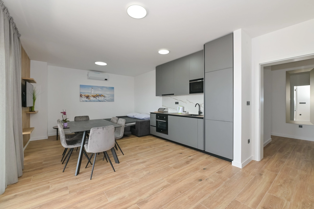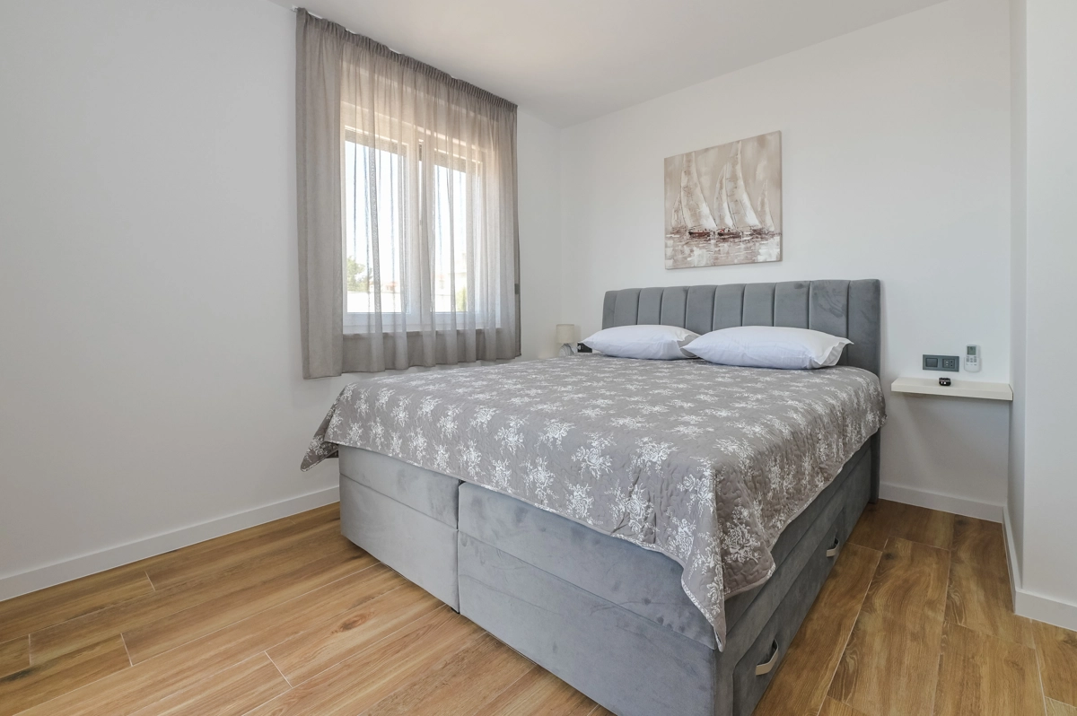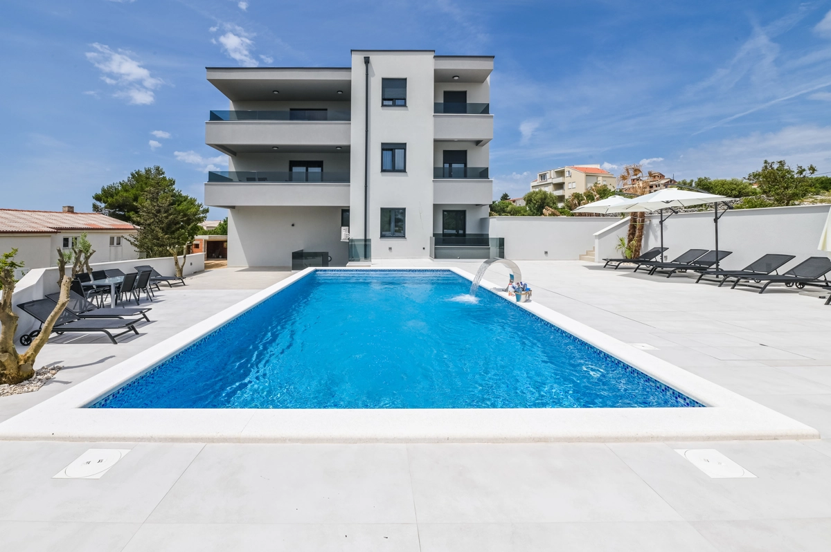 Erlebe luxuriöse Ruhe und Entspannung in den Eagle Apartments in Novalja, einem Rückzugsort der Eleganz und Erholung. Mit einem funkelnden Außenpool und fünf geräumigen Apartments, die jeweils bis zu 6 Gäste beherbergen können, ist diese Premium-Unterkunft ideal für Familien oder Gruppen, die nach einem stilvollen Rückzugsort suchen. Jedes Apartment verfügt über zwei Schlafzimmer mit Doppelbetten, ein komfortables Schlafsofa für zusätzliche Gäste und alle Einheiten (außer im Erdgeschoss) umfassen private Balkone oder Terrassen, ideal, um die atemberaubende Aussicht auf die Insel zu genießen.