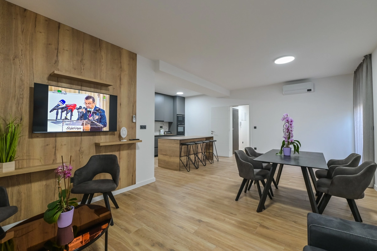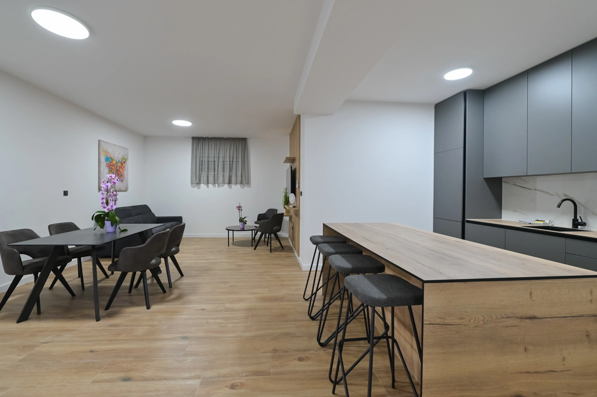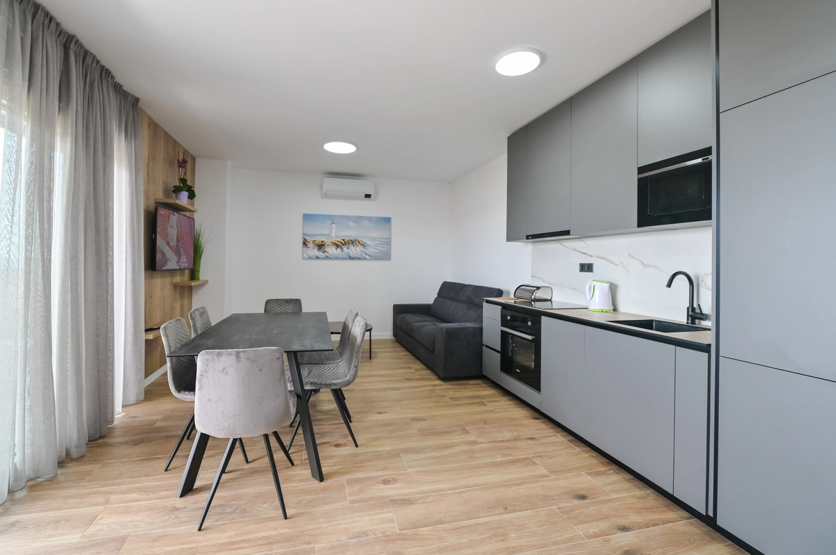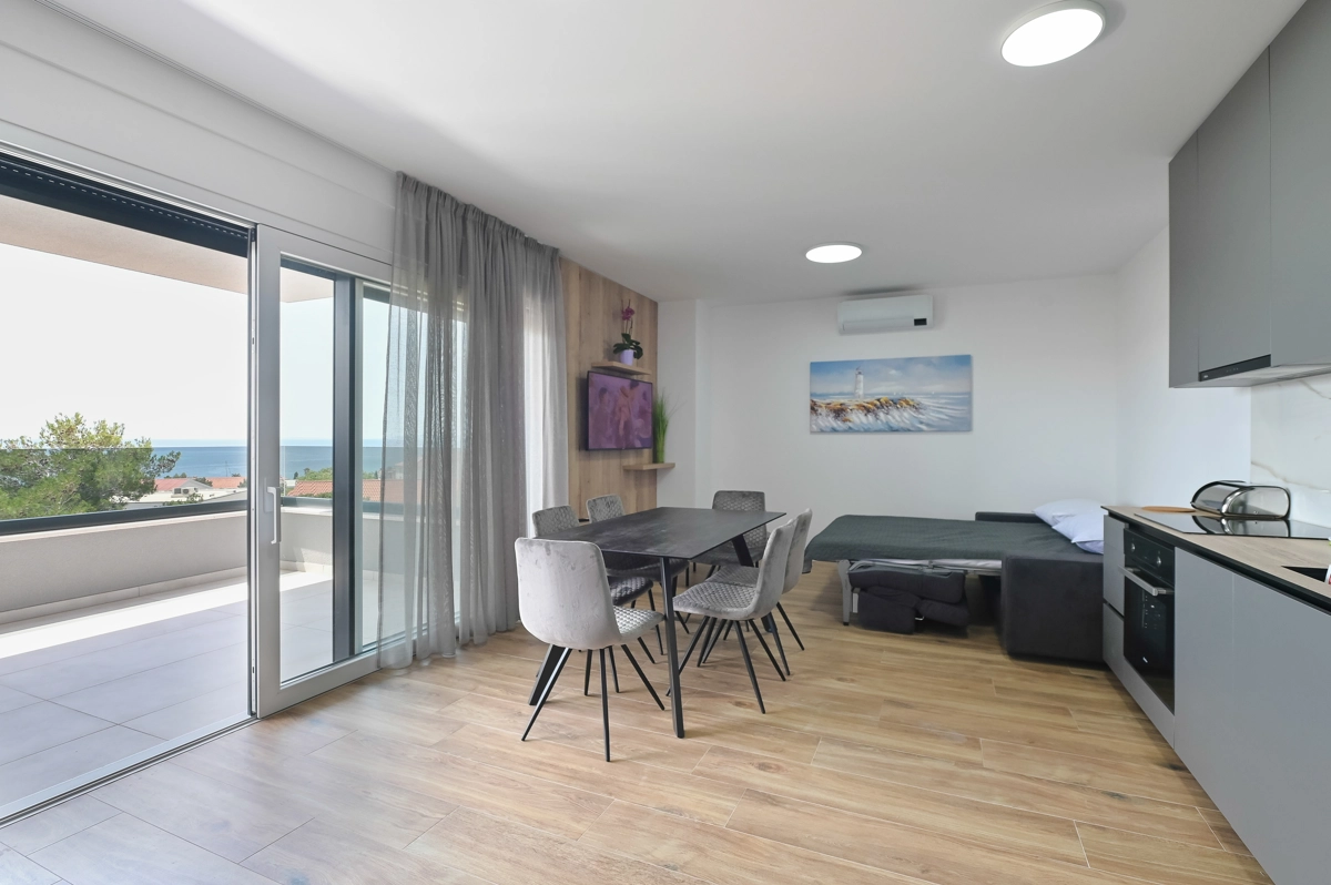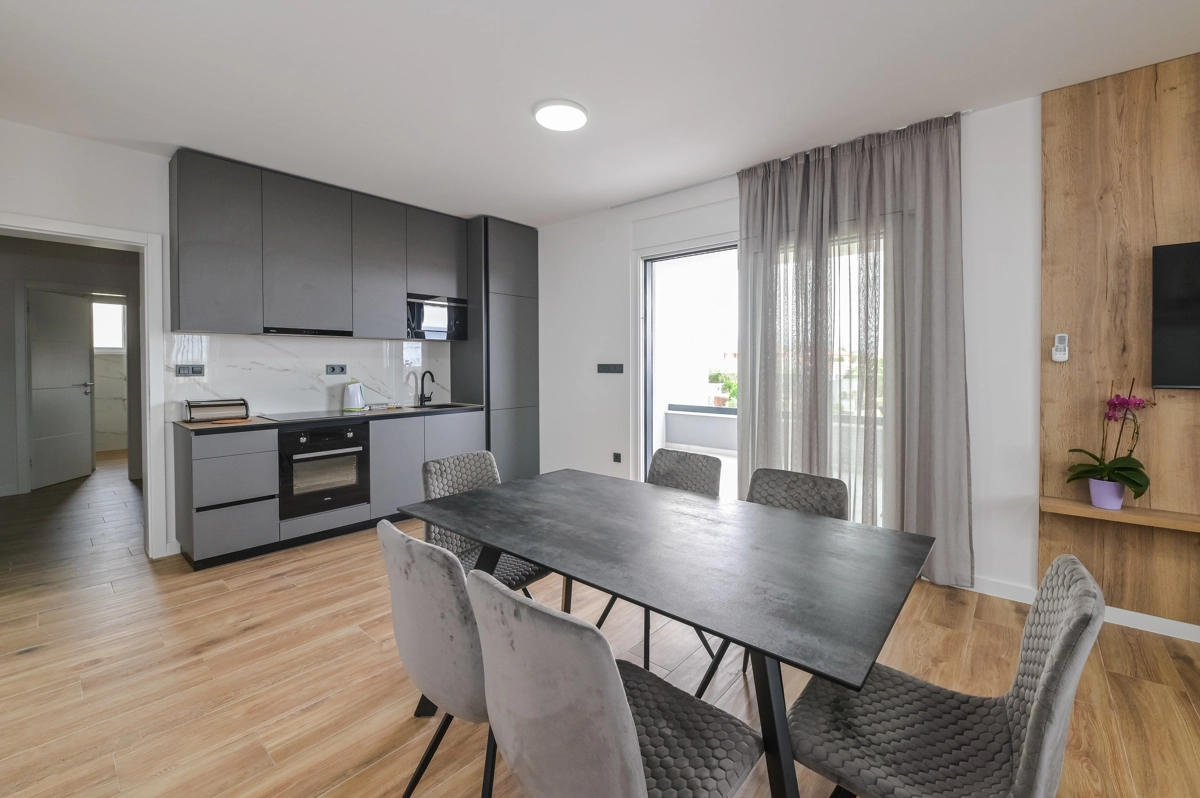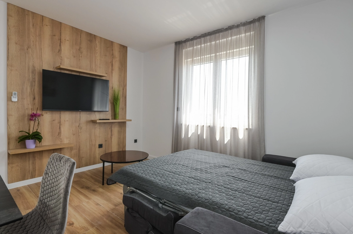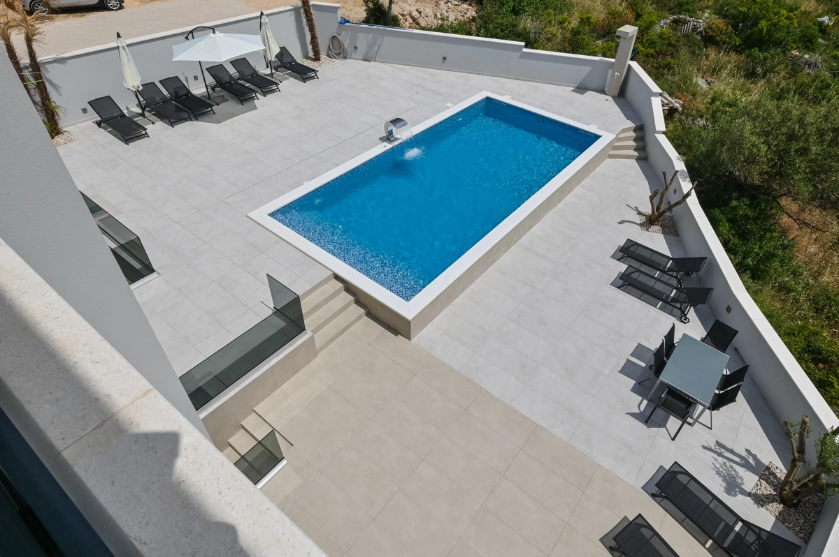 Erlebe luxuriöse Ruhe und Entspannung in den Eagle Apartments in Novalja, einem Rückzugsort der Eleganz und Erholung. Mit einem funkelnden Außenpool und fünf geräumigen Apartments, die jeweils bis zu 6 Gäste beherbergen können, ist diese Premium-Unterkunft ideal für Familien oder Gruppen, die nach einem stilvollen Rückzugsort suchen. Jedes Apartment verfügt über zwei Schlafzimmer mit Doppelbetten, ein komfortables Schlafsofa für zusätzliche Gäste und alle Einheiten (außer im Erdgeschoss) umfassen private Balkone oder Terrassen, ideal, um die atemberaubende Aussicht auf die Insel zu genießen.