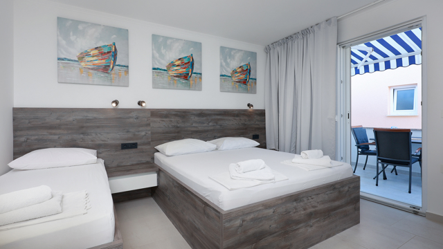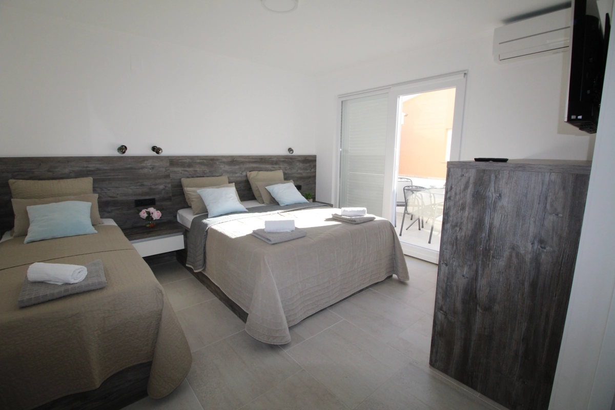 • Vanjski sadržaji: Svaki apartman ima svoj balkon ili terasu te gosti imaju pristupsunčalištu s ležaljkama, savršenim za opuštanje.