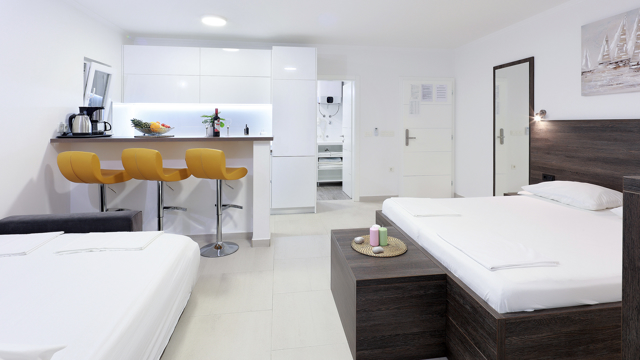 • Moderni komfor: Svaki apartman nudi moderan dekor, klima uređaj, Wi-Fi te LCD TV