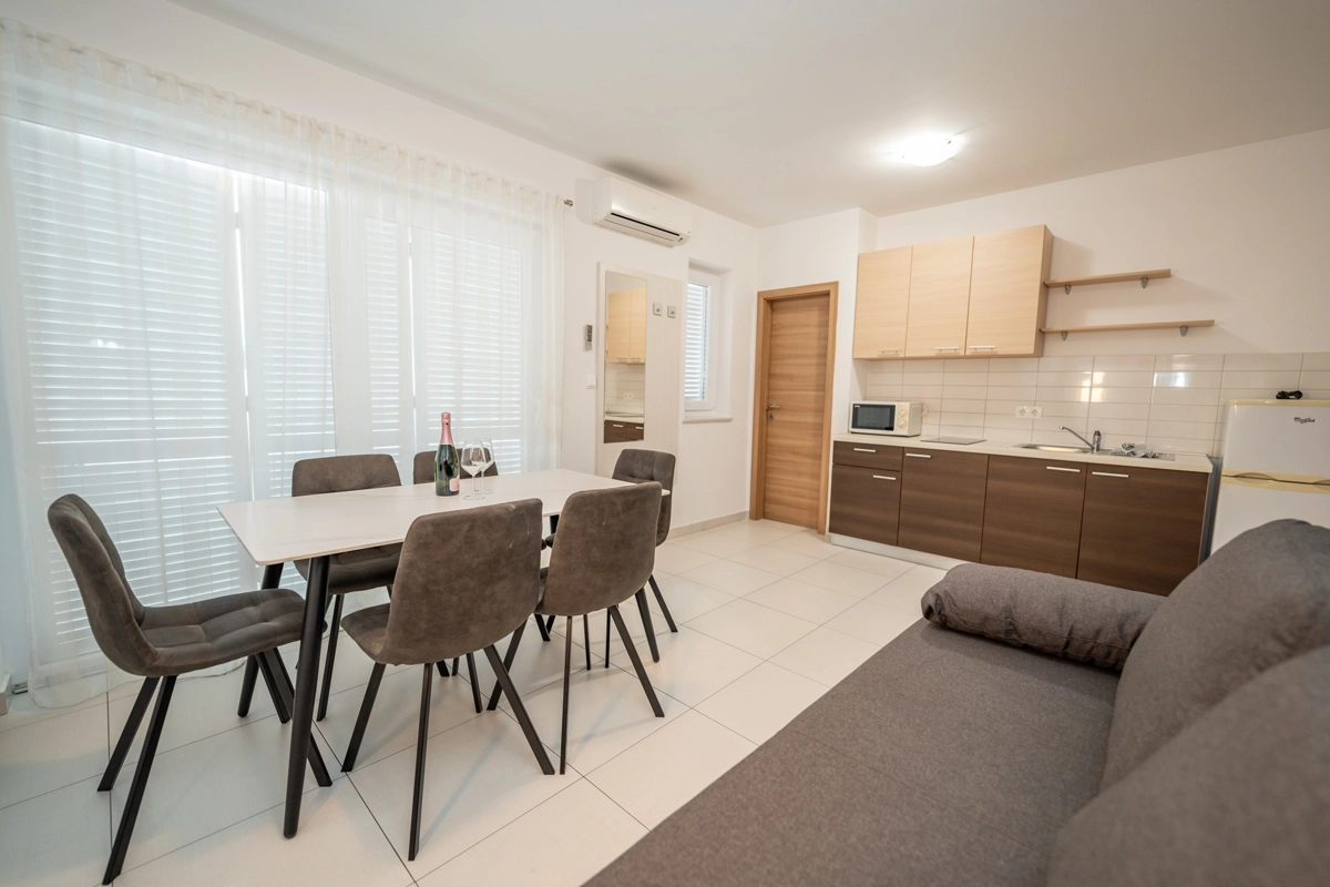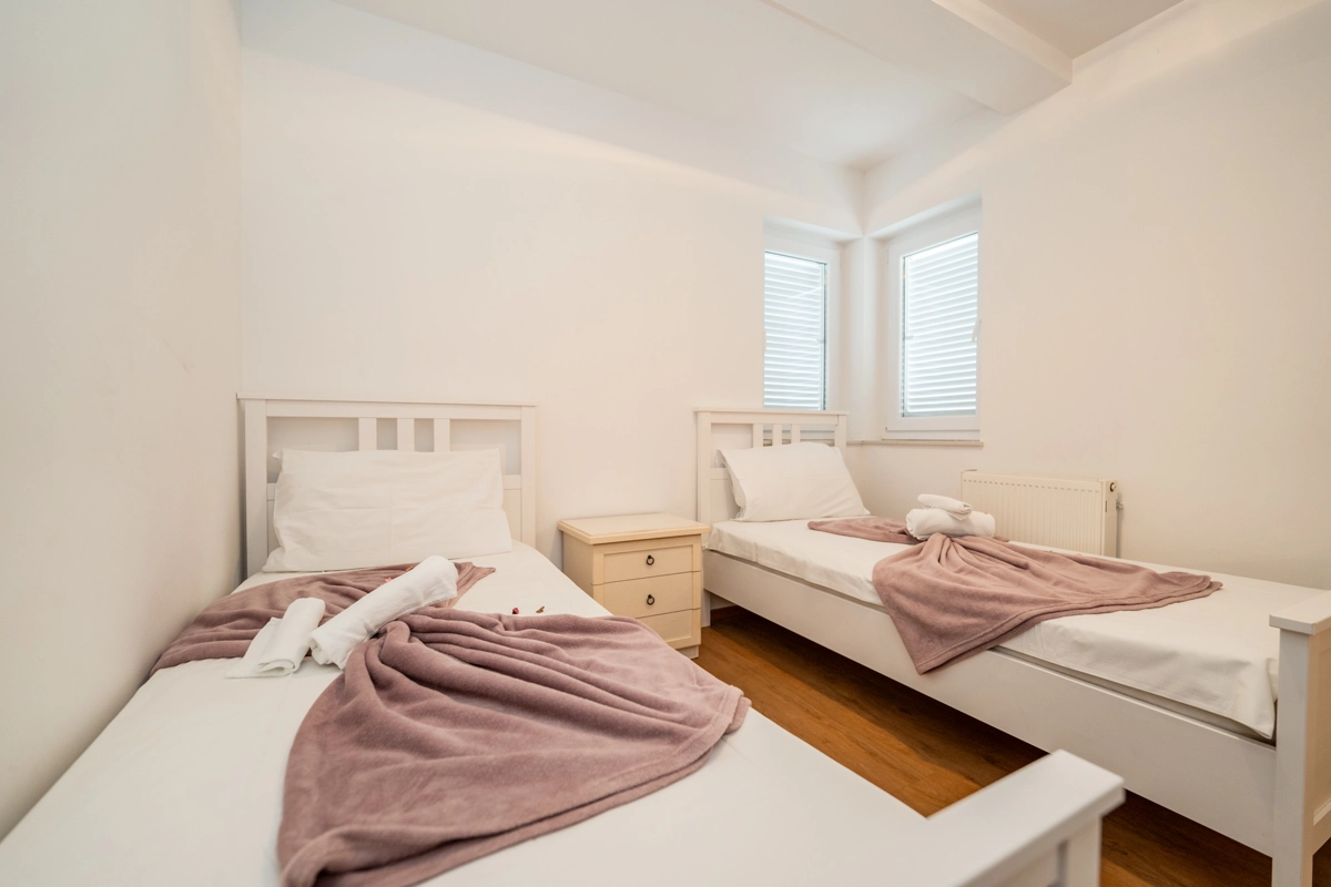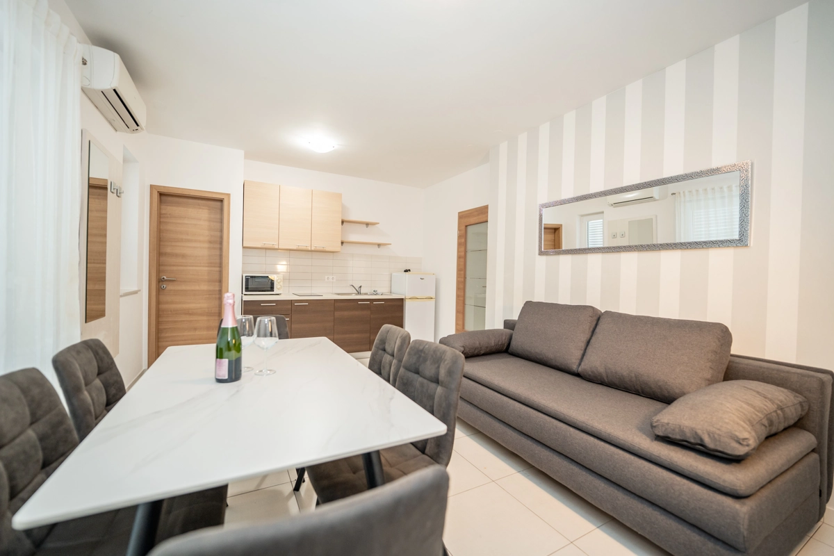 The property includes 9 thoughtfully designed apartments catering to groups of all sizes. Choose from 4 apartments for 6 guests, 3 apartments for 4 guests, and 2 apartments for 8 guests, including an exclusive VIP top-floor apartment with premium features. Each unit boasts modern amenities such as air conditioning, high-speed Wi-Fi, fully equipped kitchens, and elegant bathrooms. Private balconies or terraces in every apartment provide the perfect setting to enjoy your morning coffee or unwind with evening drinks.