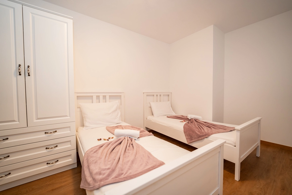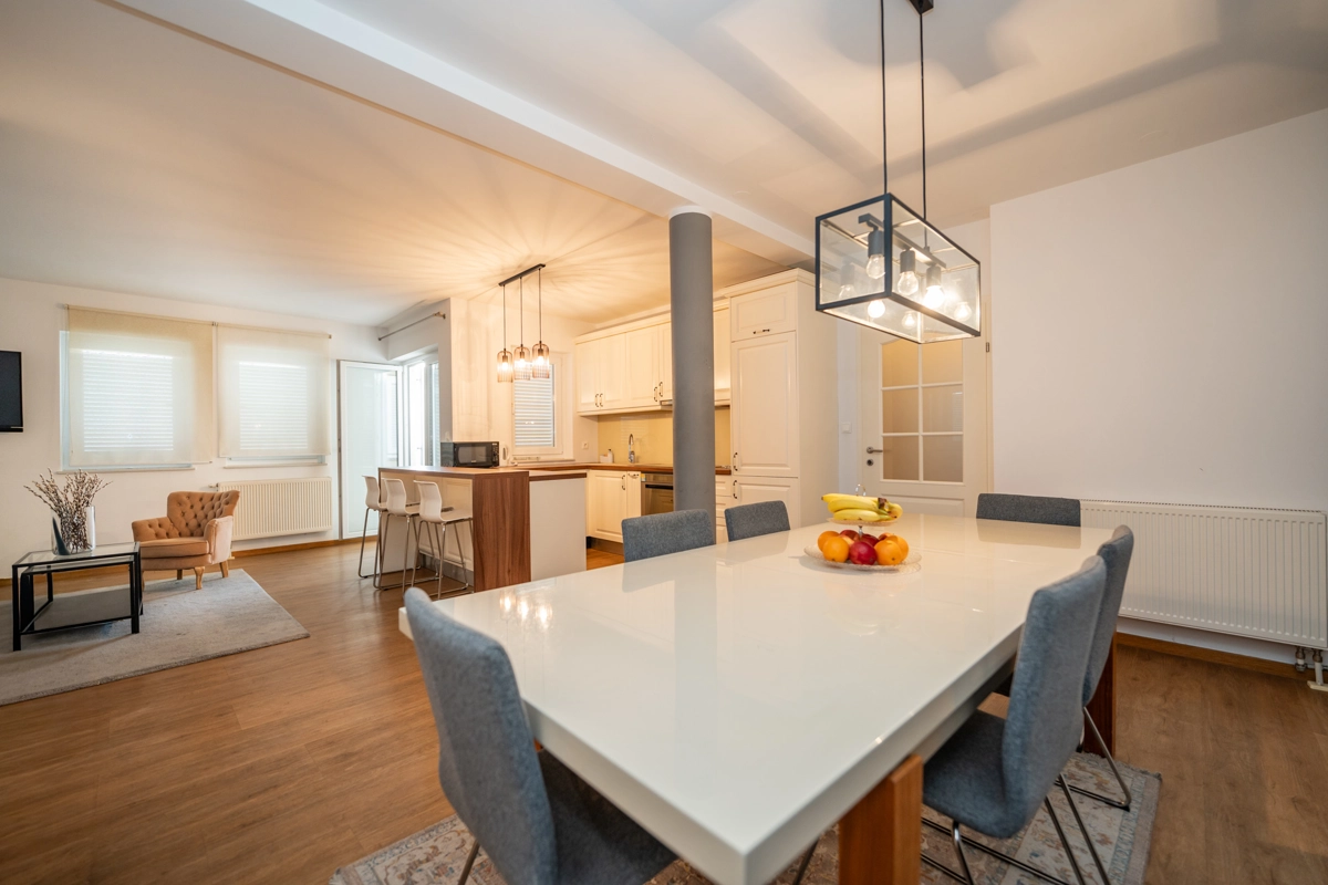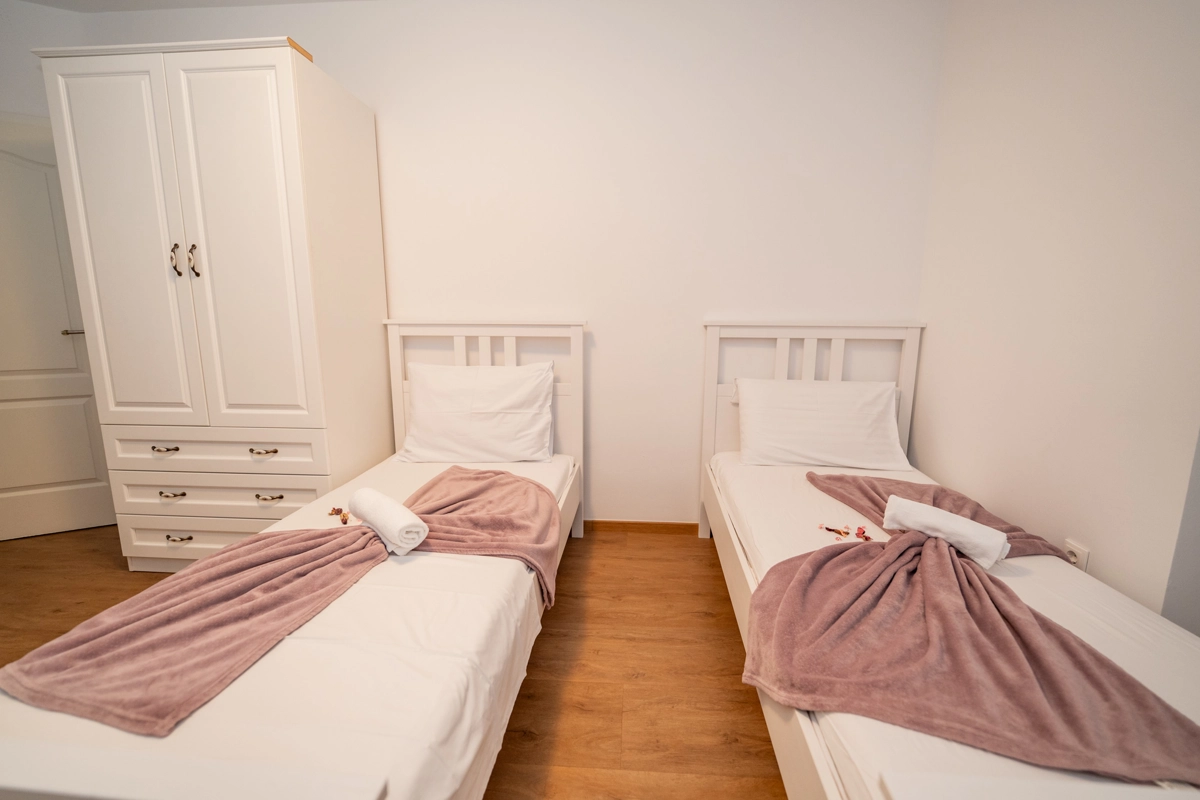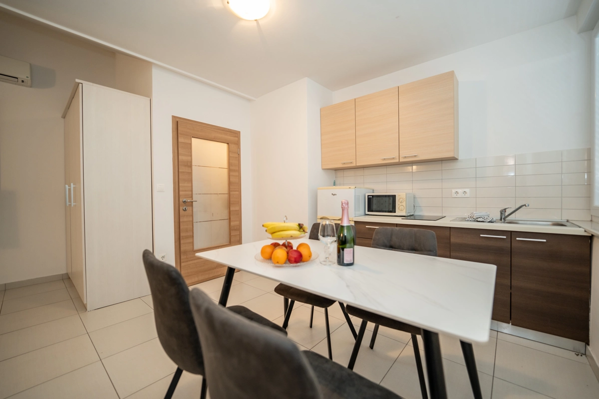 The property includes 9 thoughtfully designed apartments catering to groups of all sizes. Choose from 4 apartments for 6 guests, 3 apartments for 4 guests, and 2 apartments for 8 guests, including an exclusive VIP top-floor apartment with premium features. Each unit boasts modern amenities such as air conditioning, high-speed Wi-Fi, fully equipped kitchens, and elegant bathrooms. Private balconies or terraces in every apartment provide the perfect setting to enjoy your morning coffee or unwind with evening drinks.