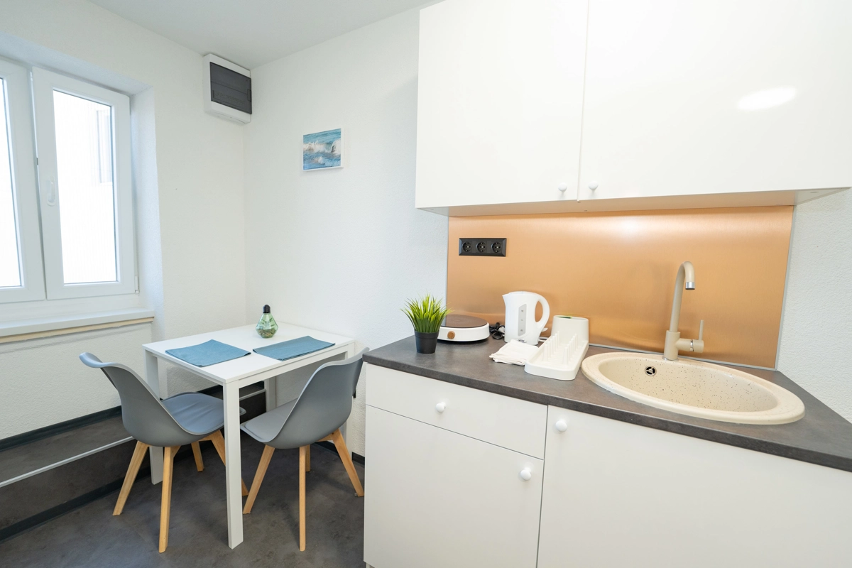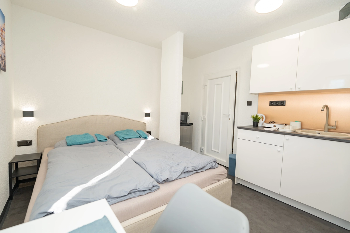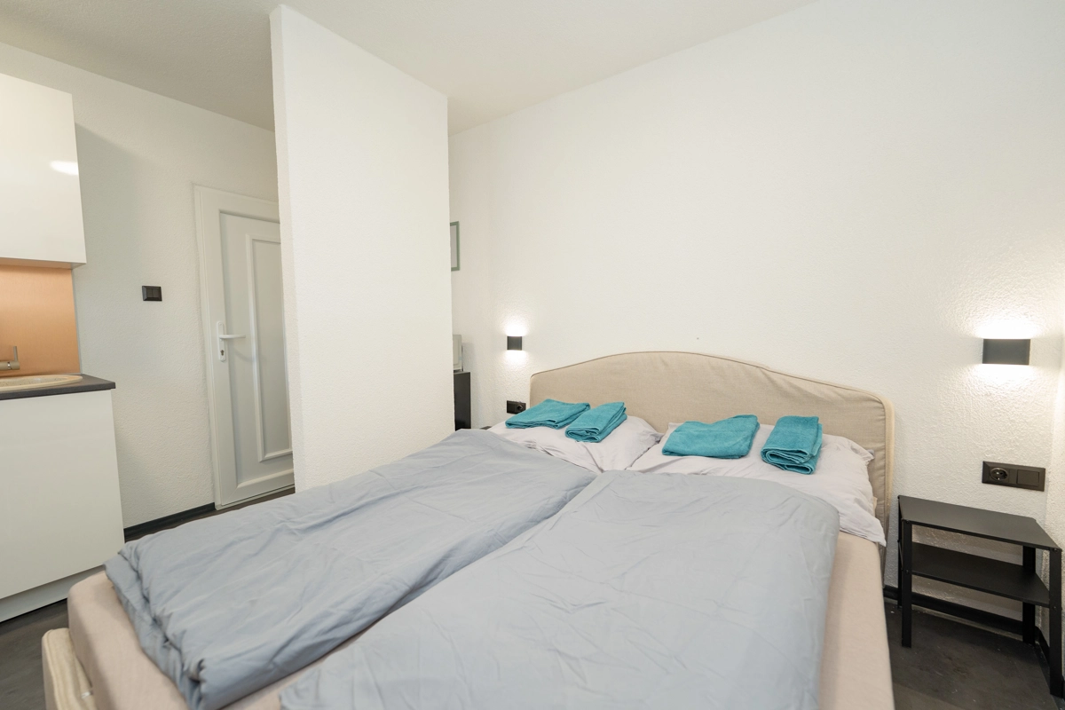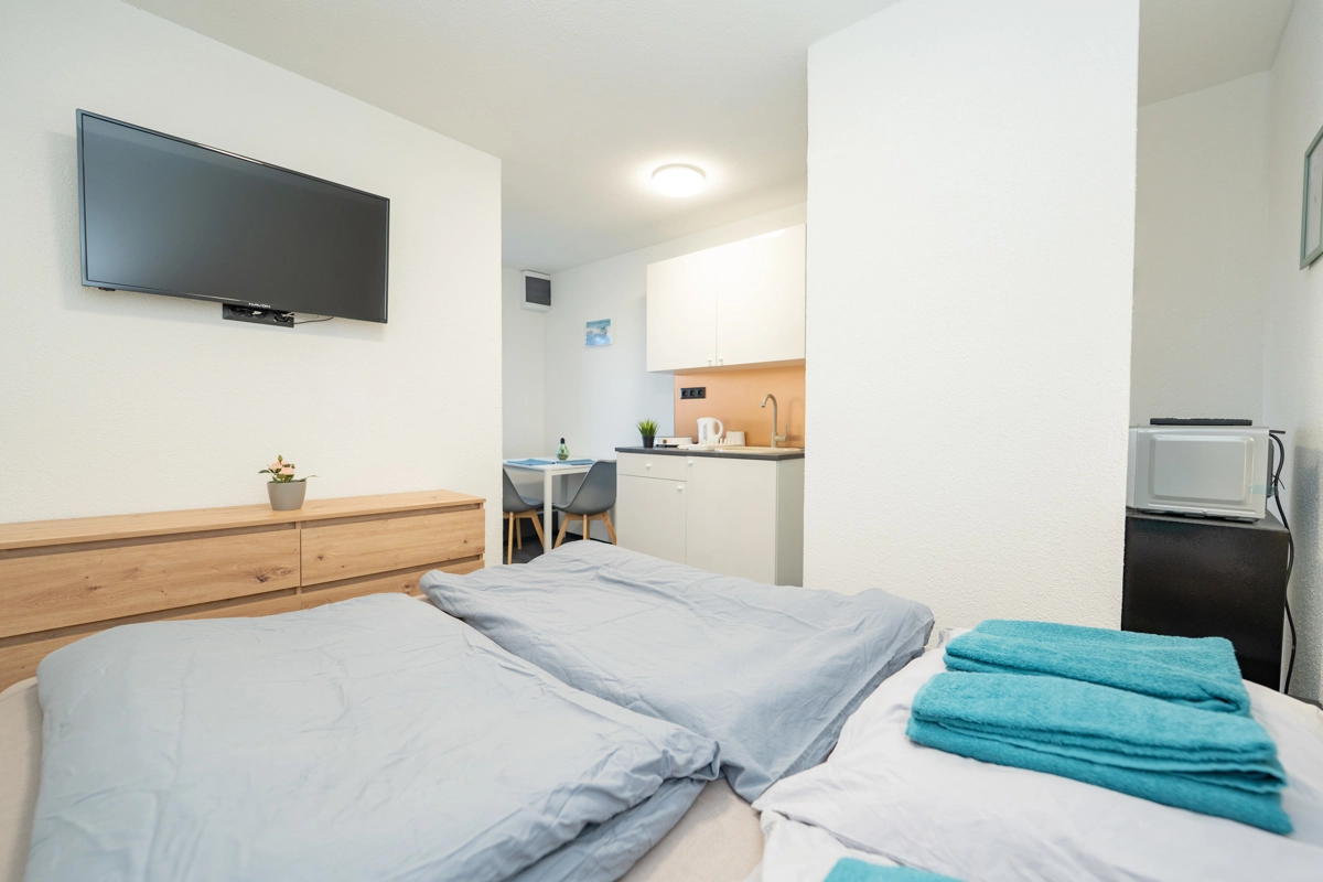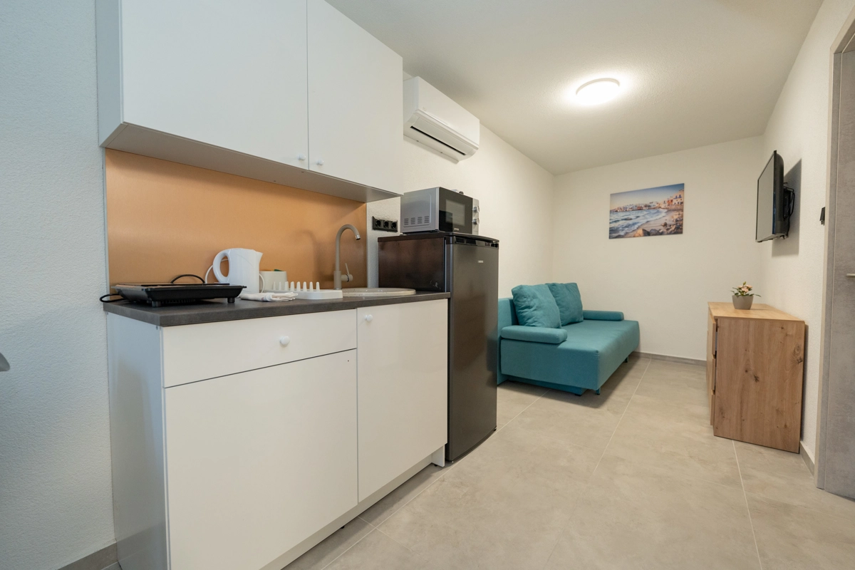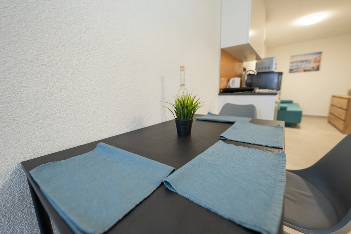 Each apartment is compact yet thoughtfully designed, featuring a modern kitchen, air conditioning, and high-speed Wi-Fi to ensure a comfortable and seamless stay.