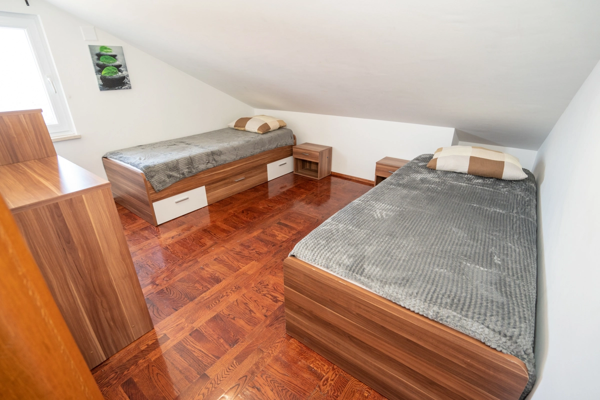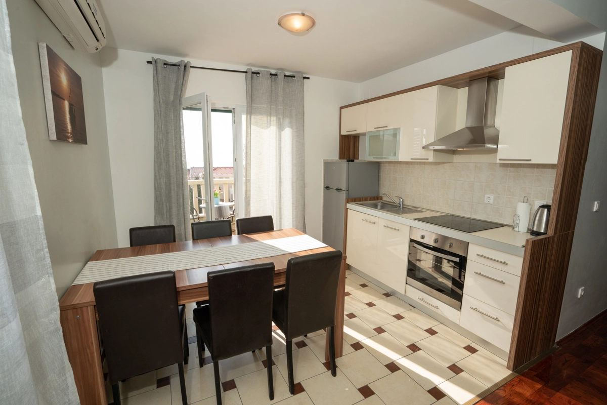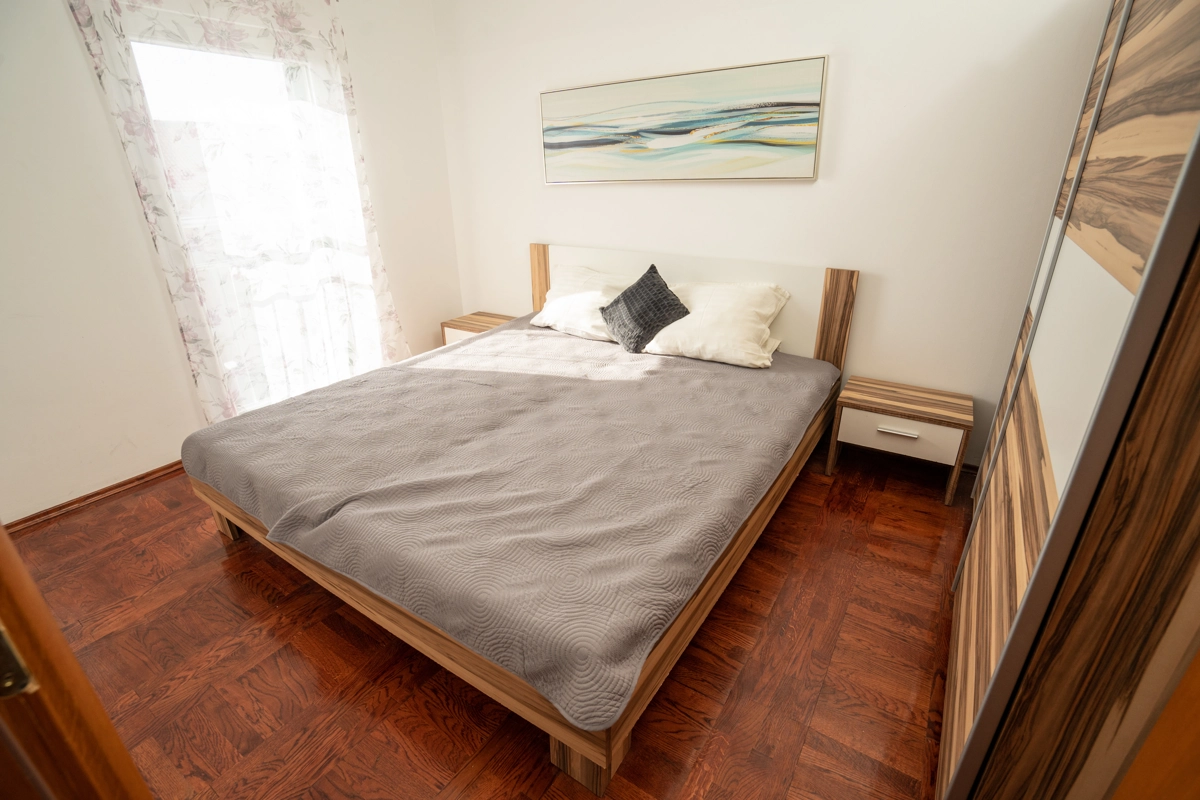 These budget-friendly apartments are fully equipped with air conditioning, Wi-Fi, and entertainment options like TV. The kitchen includes essential appliances, such as an oven, making it easy to prepare meals. Guests also benefit from private parking for added convenience, and the nearest bus station is just 200 meters away, allowing easy access to Novalja’s sights and beaches.