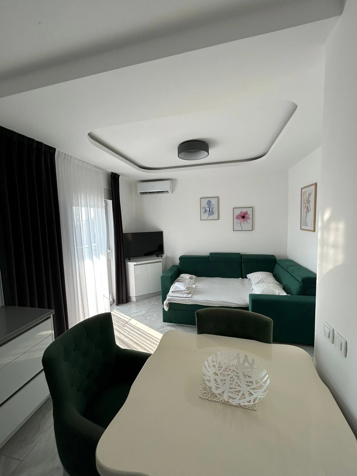 • Living Room with Sofa Bed: A comfortable sofa bed in the living area can accommodate two additional guests.